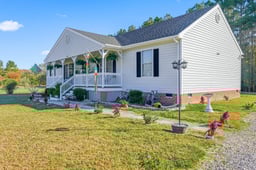 Say hello to this little slice of paradise in this quiet pocket of Dinwiddie County! Ideally located close enough to the city for shopping, dining, medical, and travel convenience, while also being far enough away for quiet enjoyment in your own back yard. This home is situated on a beautiful 1.5-acre lot, featuring a large gravel driveway with plenty of parking space, garden borders with an array of flowers and plants to enjoy in the spring, peach trees, and ample space to add your homesteading projects! You're offered a warm welcome onto a full country porch and into the bright foyer of this home. To the right you'll find a spacious morning room with a large window for plenty of sunlight, ideal for entertaining, and to the left you'll find the formal dining area with beautiful chair and crown moldings and decorative lighting. Through the entry hall, you're welcomed into a spacious living area with a vaulted ceiling, chandelier, corner fireplace, access to the kitchen area and sliding doors to the back deck. The kitchen offers ample cabinetry, bar-top seating, a vaulted ceiling and access to the laundry room and primary bedroom. This primary bedroom has a generous amount of space, and offers a double closet, walk-in closet, and en-suite bath with a jacuzzi tub, walk-in shower, and a double vanity. The other end of the home holds a pull-down attic with flooring available for storage, a full shared bath, linen closet, and two spacious bedrooms, each with a double closet for storage. The rear of this property completes this home with a gazebo on the deck, separate patio with a small gazebo for the grill, and the wood line to offer maximum privacy. Roof replaced in 2024, HW Tank 2025