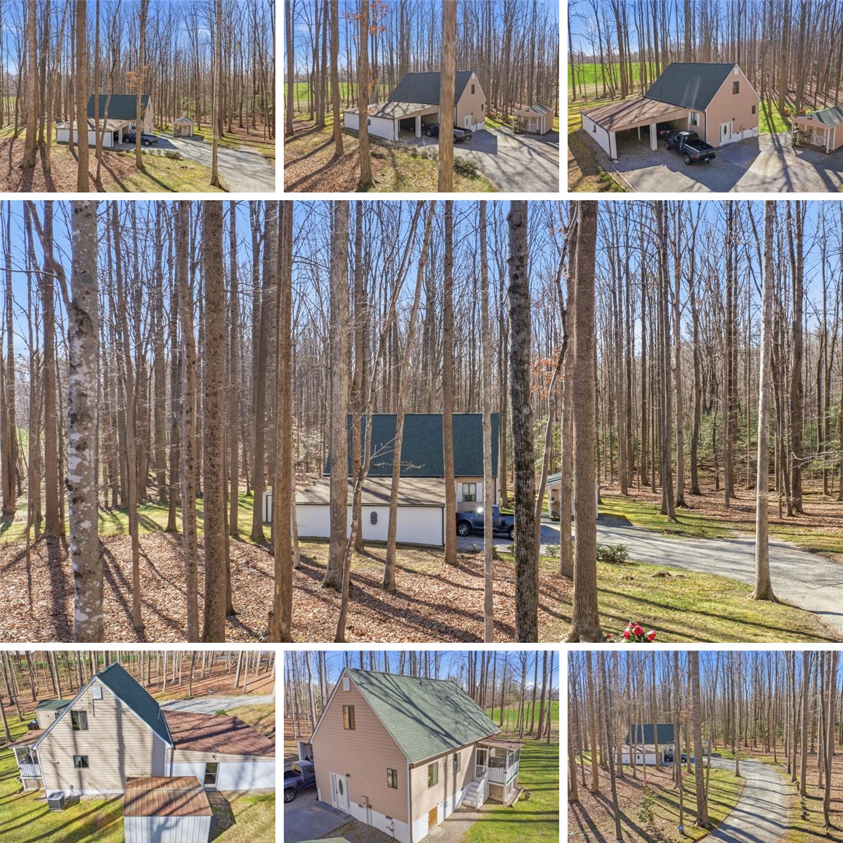Welcome to this charming cottage-style home, situated on a private 2.87 lot in Powhatan and located less than 10 minutes from shopping and dining. With updates throughout and on the property, this home is ideal for a first-time buyer or an investor looking to add a quiet-country getaway to their portfolio! You're welcomed into a cozy den with high ceilings and laundry access, and through to the main hallway which provides access to the 2-car carport, upstairs bedroom(s), or kitchen, and has 2 storage pantries and a 1/2 bath for guests. This eat-in kitchen has newer cabinetry and countertops, with appliances only a few years old, access to a covered screen porch on the rear of the home, and a large flex room with an amazing view of the property that could be used for a bedroom or rec area. Upstairs you'll find a cape style bedroom with a separate smaller room, ideal for a nursery, office, closet, or hobby room. This bedroom also has an updated full bathroom with a large tiled walk-in shower and newer vanity. Ask your agent for a full list of features and updates!