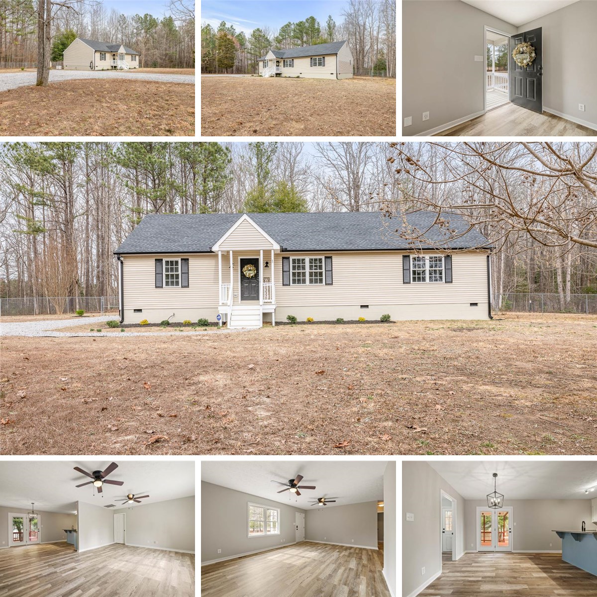 Nestled on 5 serene private acres, this charming 3-bedroom rancher offers the perfect blend of comfort and versatility. Designed with privacy in mind, the layout features two bedrooms and a full bath on one side, while the spacious primary suite is on the other—complete with its own ensuite and an adjoining bonus room, perfect as a nursery, office, or cozy sitting area. Step inside to discover fresh, modern updates, including new LVP flooring and a fresh coat of paint throughout. Outdoors, enjoy the expansive backyard from the oversized deck—partially covered for shade—ideal for entertaining or relaxing in your own oasis. The fenced rear yard is perfect for pets or gardening, and with the Generac whole-house generator, you'll have peace of mind no matter the season.